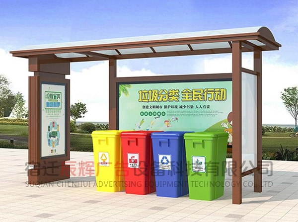 垃圾分類亭一般放在小區(qū)或者公共的地方集合垃圾之用。同樣的材料也可制成配電房、報(bào)亭、崗?fù)ぁ⒕皡^(qū)休息室等。宿遷辰輝廣告設(shè)備科技有限公司,我們的產(chǎn)品豐富多元化,應(yīng)用場(chǎng)景廣泛,也可以根據(jù)客戶的需要來(lái)圖定做。
